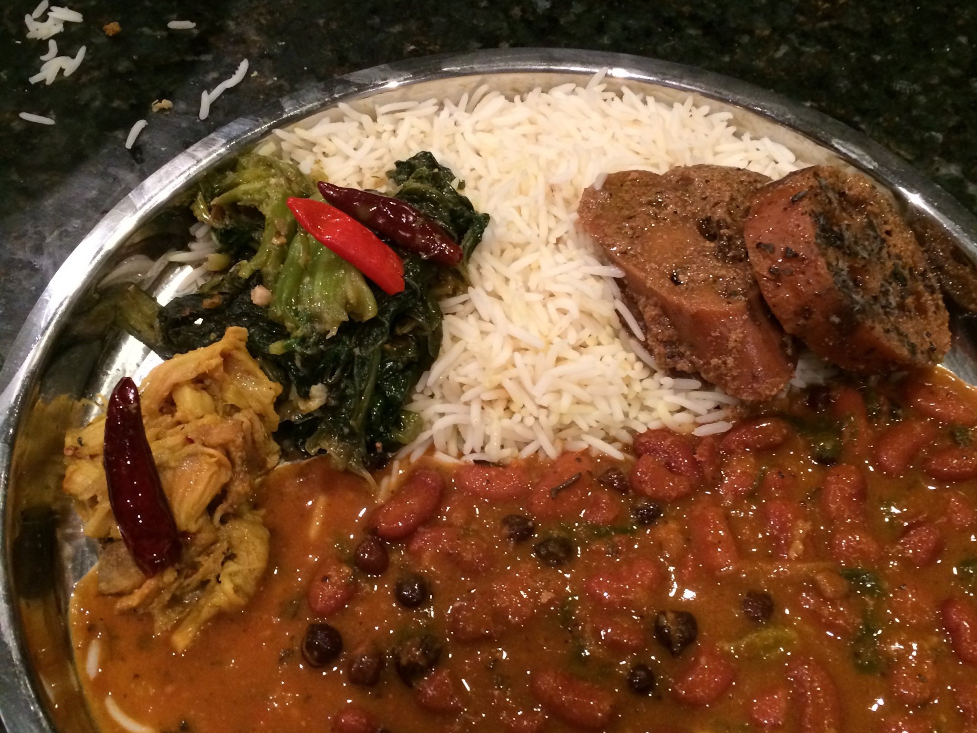 Cooking with and for friends is always a delight. In this array of vegetables I was experimenting with Rajma and Black Chana and then with Jackfruit. Sadly that I could not quite get the taste for the jackfruit. The assembled thali was delicious and thoroughly enjoyed.