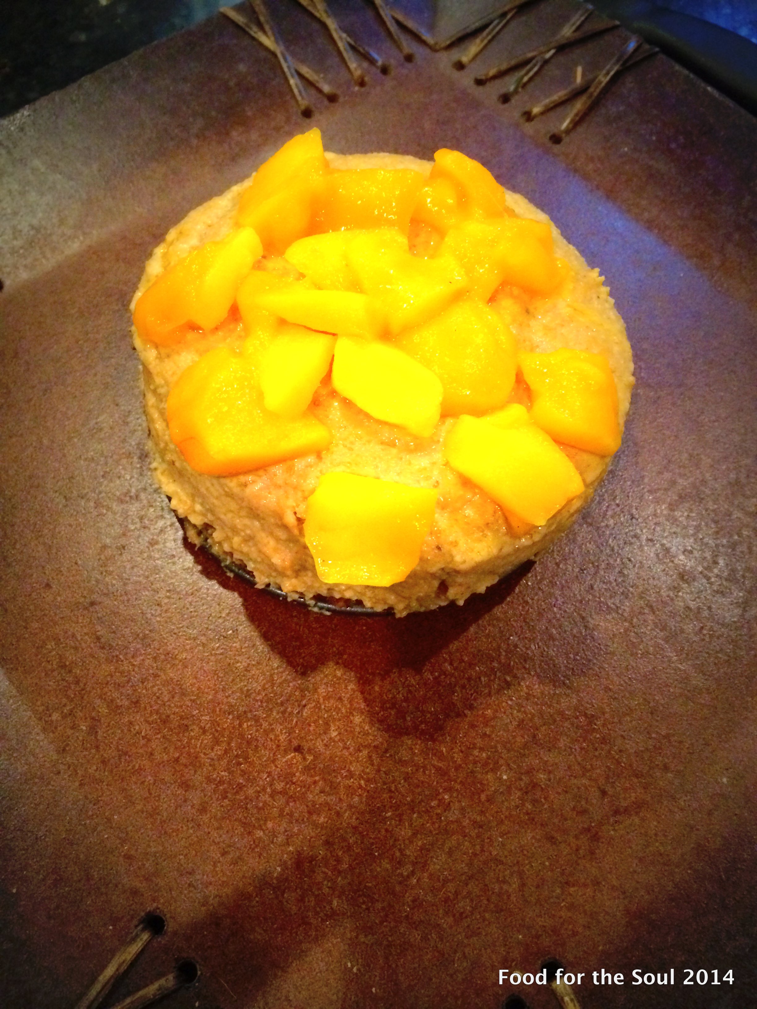 2 1/2 cups raw cashews; 1 1/2 cup chopped mango pieces; 1/2 cup water; 1/2 cup coconut palm sugar; 1 teaspoon vanilla extract ,1 tsp of lemon zest, 1 tsp Maca powder (optional)….once blended add a tablespoon and a half of psyllium husk to thicken.