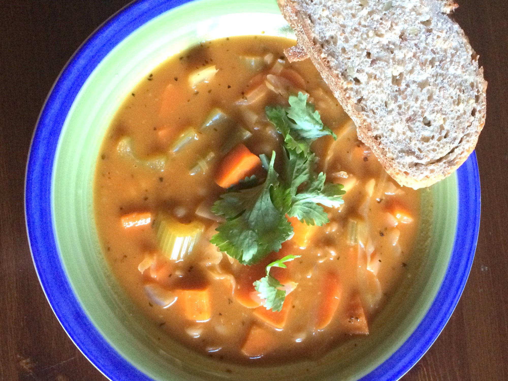 You also need organic vegetable broth, 1 tsp cumin seeds, 1 tbsp ground coriander, 1/ tsp cayenne, salt and pepper to taste.