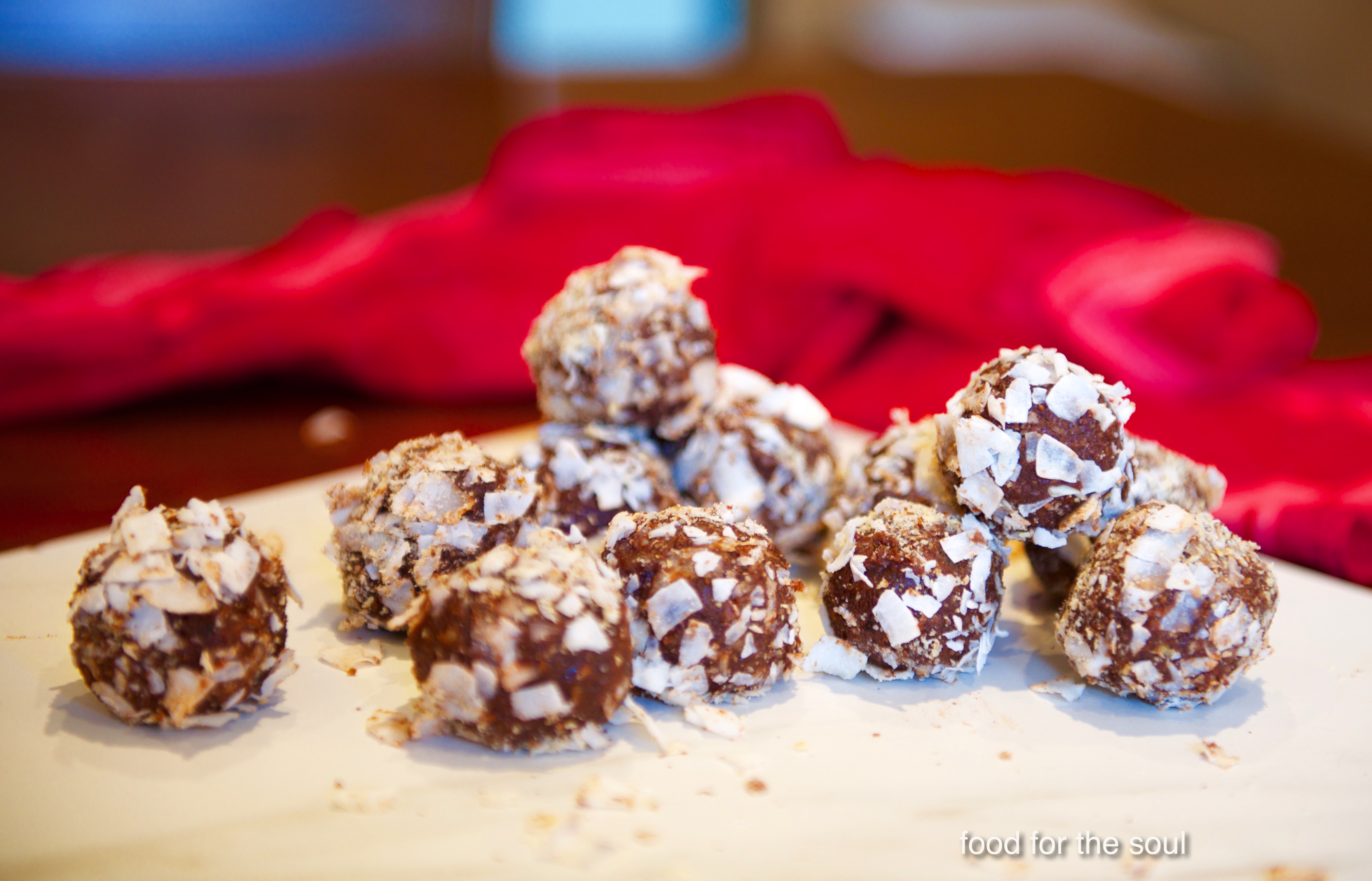 Enough said. I was looking for something to take for my sister as I went to visit her in NY. It had to be decedent yet healthy and energy rich for a avid runner. My inspiration and base recipe come from Lili’s Spirulina energy balls…..just minus the Spirulina. Thank you Lili.