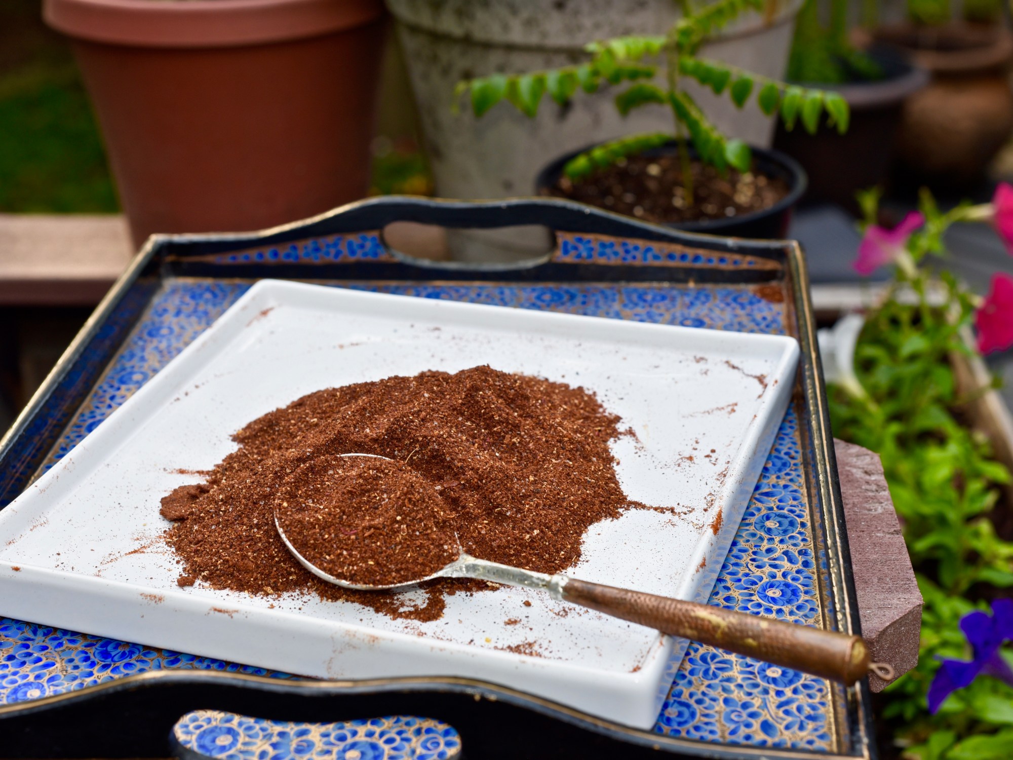 Add the rest of the ingredients and start blending in a spice grinder.
