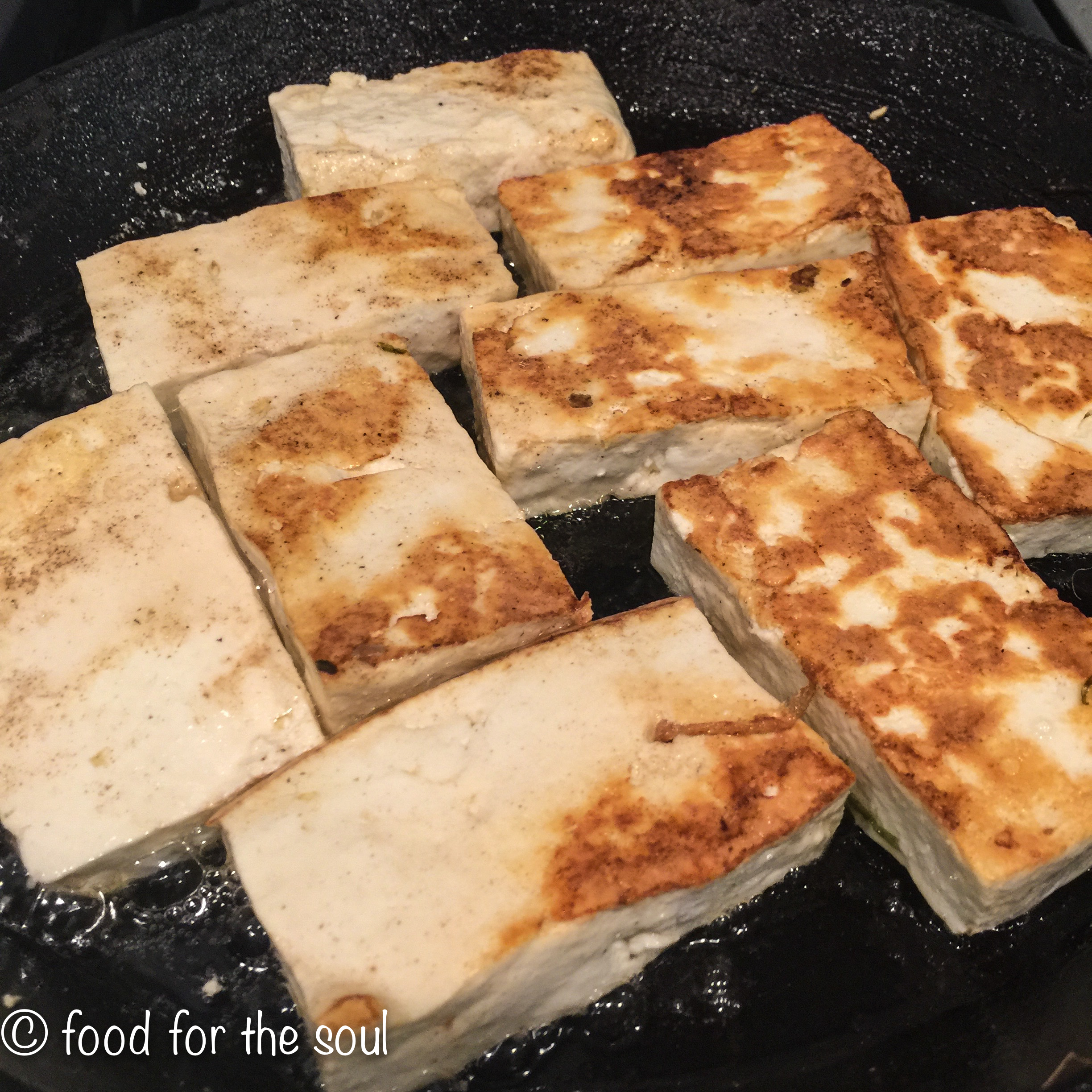- Fry the cottage cheese pieces in oil until lightly golden ( not too dark), remove and immerse in warm water. Set aside