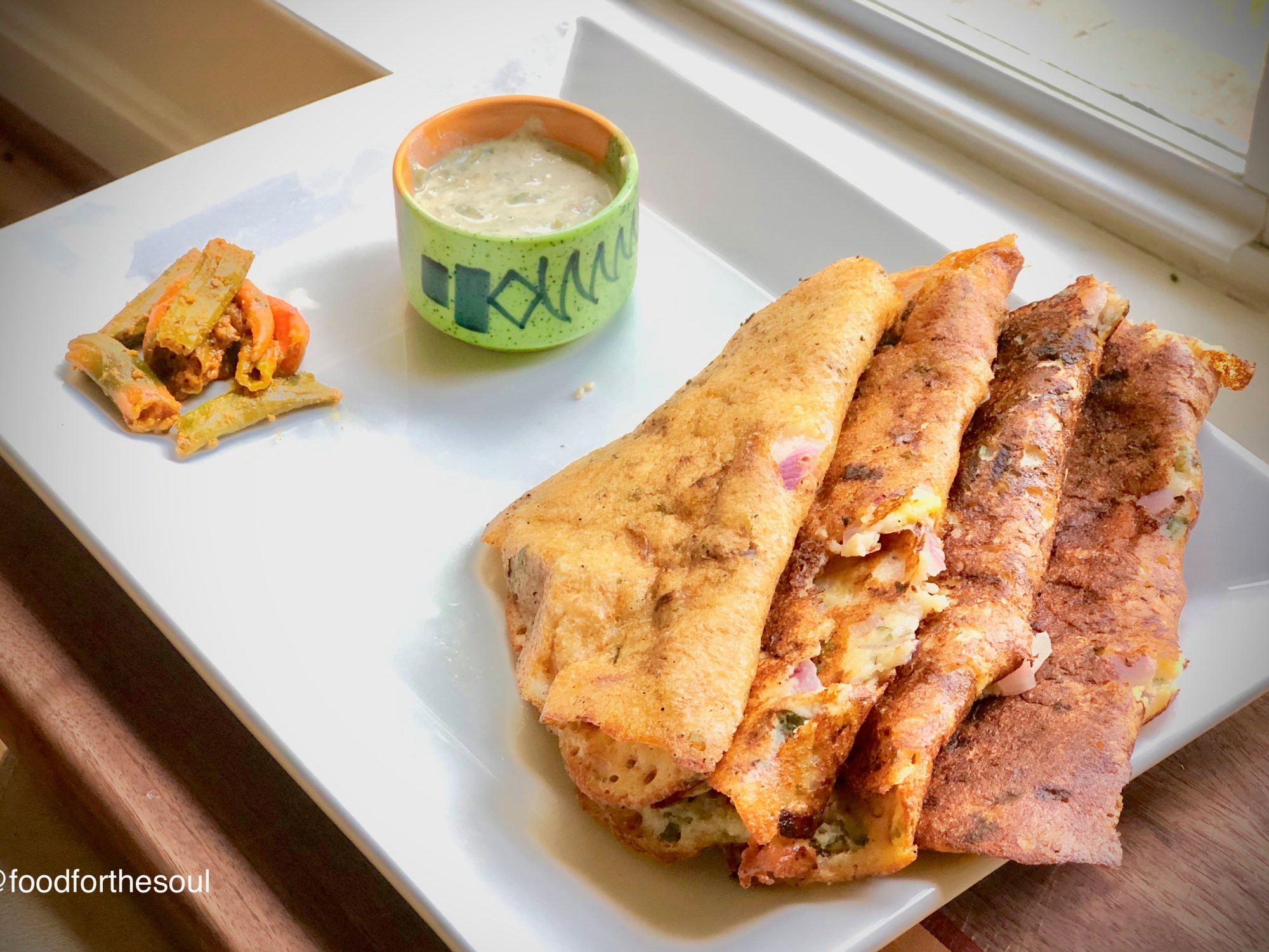Its hot and humid but soaking in the warmth while browsing cookbooks is how I tend to enjoy my weekend afternoon. I was looking a vegan lunch idea and stumbled upon so many wonderful “Chilla” recipes, These crepes called “Chilla” or “Cheela” are so simple, wholesome and savory that I couldn’t wait to experiment with a version of my own.