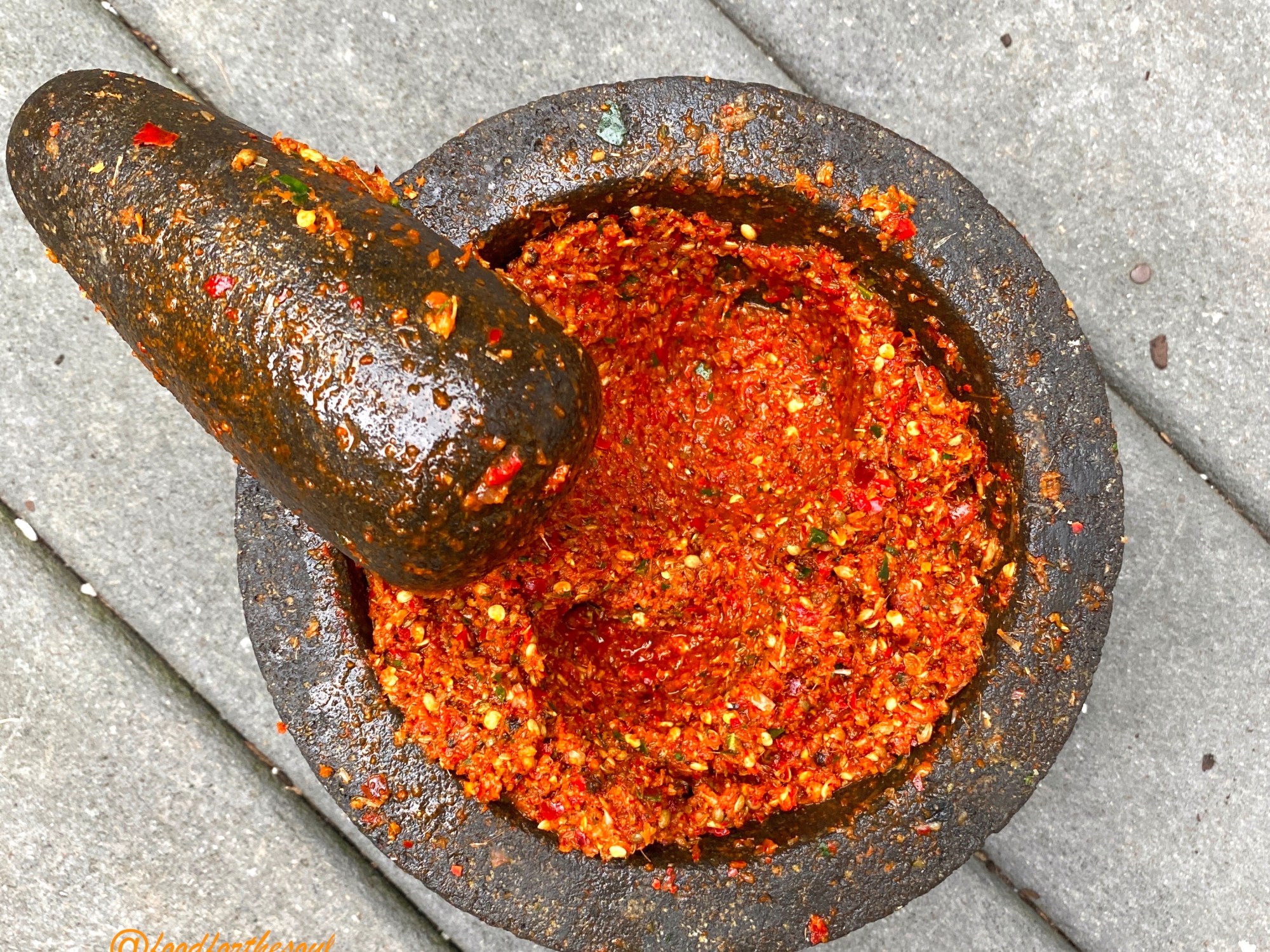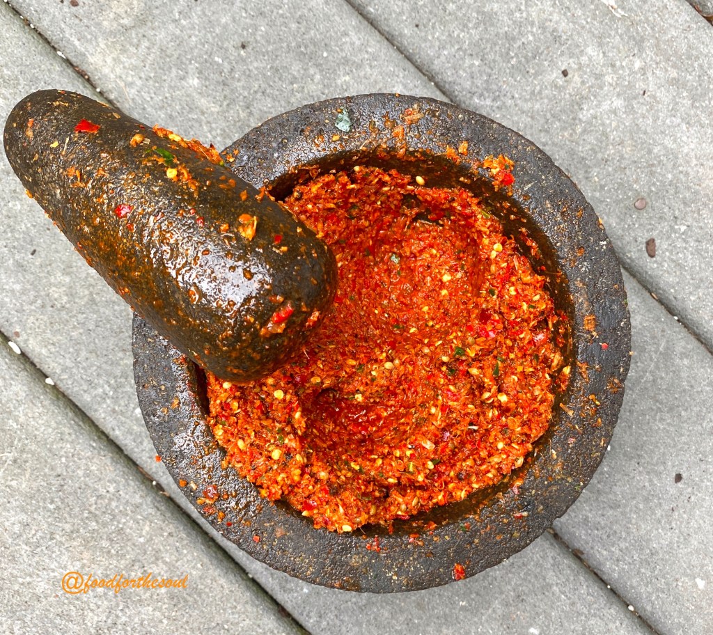 • At this point you can decide to use a mortar pestle or just go with a food processor.