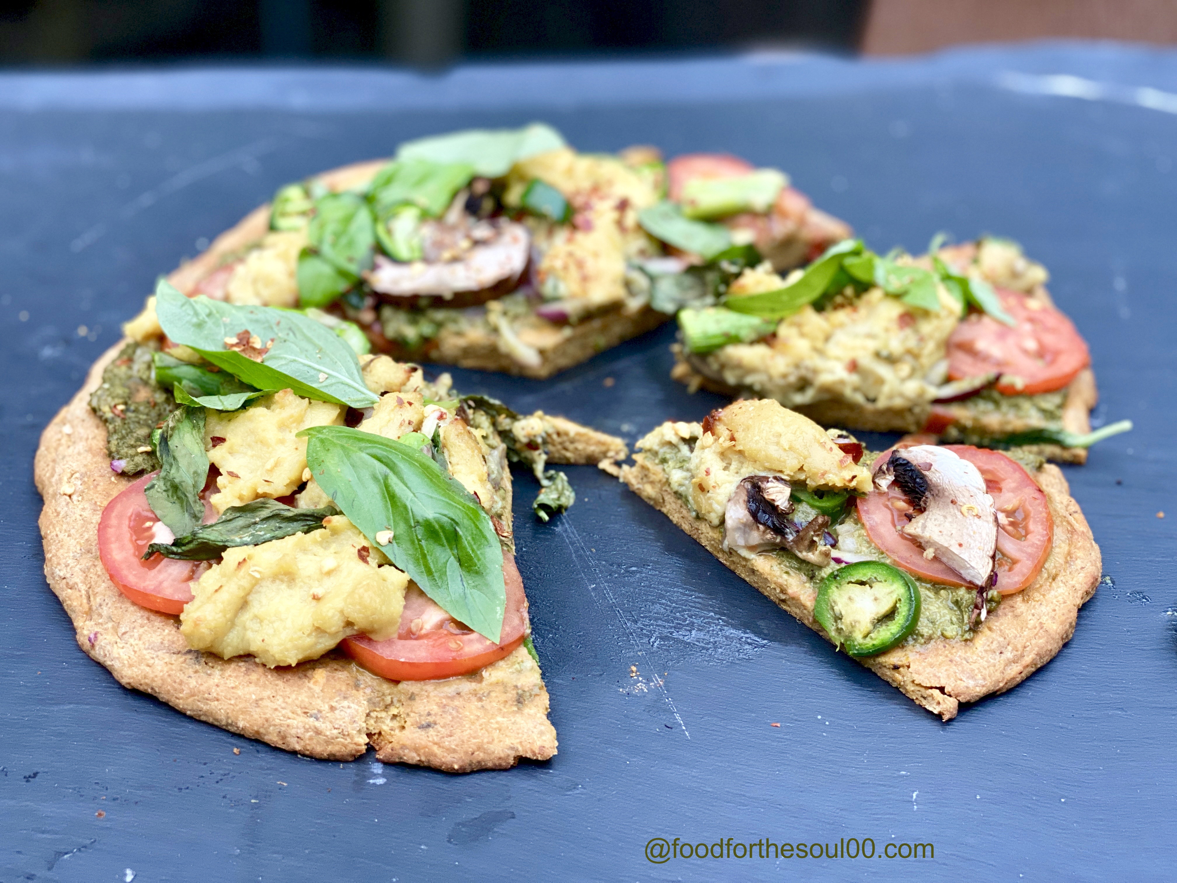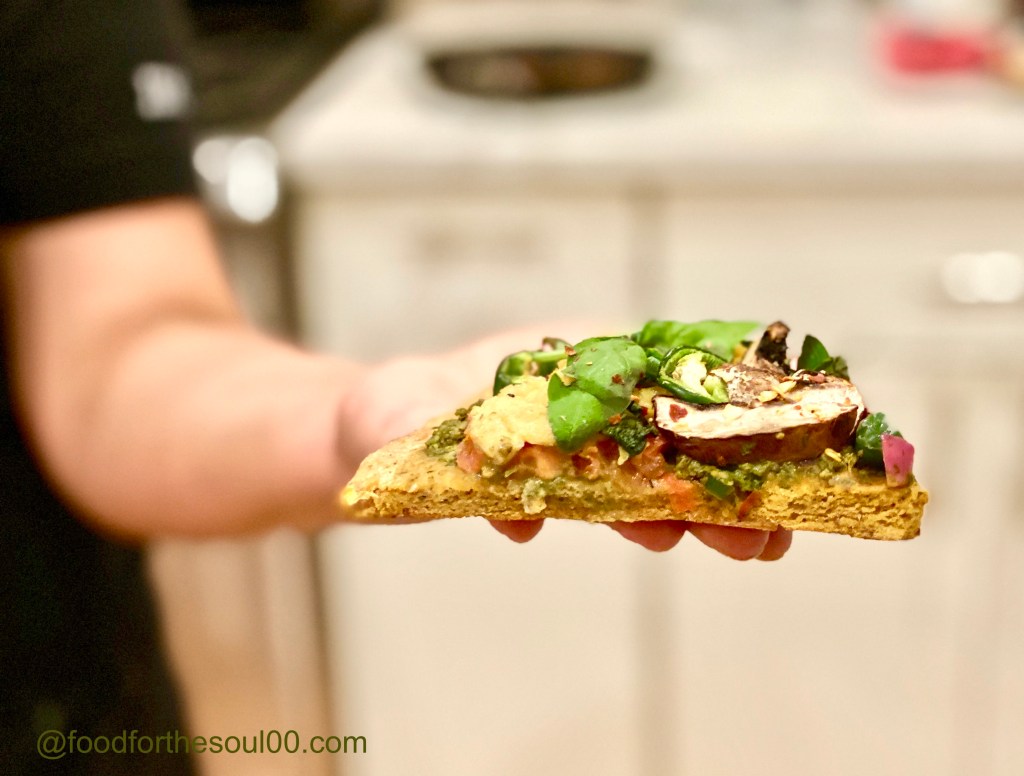 But now……..this beautiful plant based pizza starting from the crust to the cheese was a delight to make and absolutely delicious and satisfying to eat. The first time I made it, it was gone in minutes, the second time I made doubles and even froze some baked crust for next time. Now this has become a go to recipe that I make over weekends. The plan usually is to have the extra crusts prepared for the weekdays.