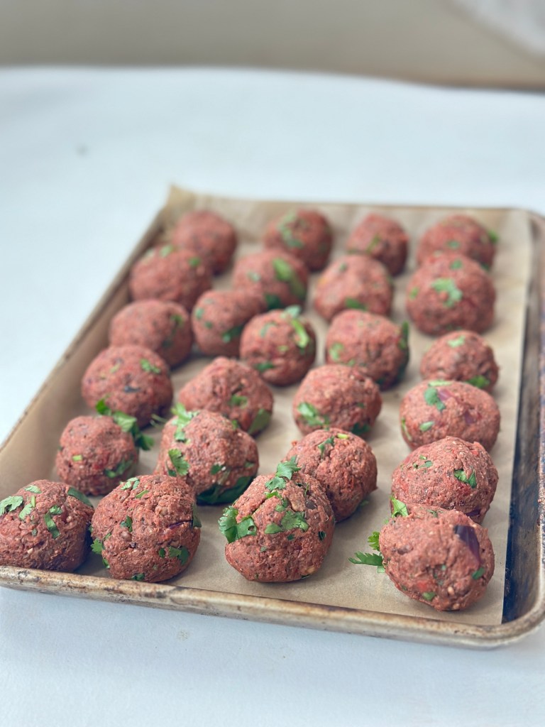 This basic recipe just highlights the Koftas. I have served them with pasta, sandwiches, and Indian curries, which shows their versatility. I usually make double batch and freeze them These freeze perfectly for a few weeks.