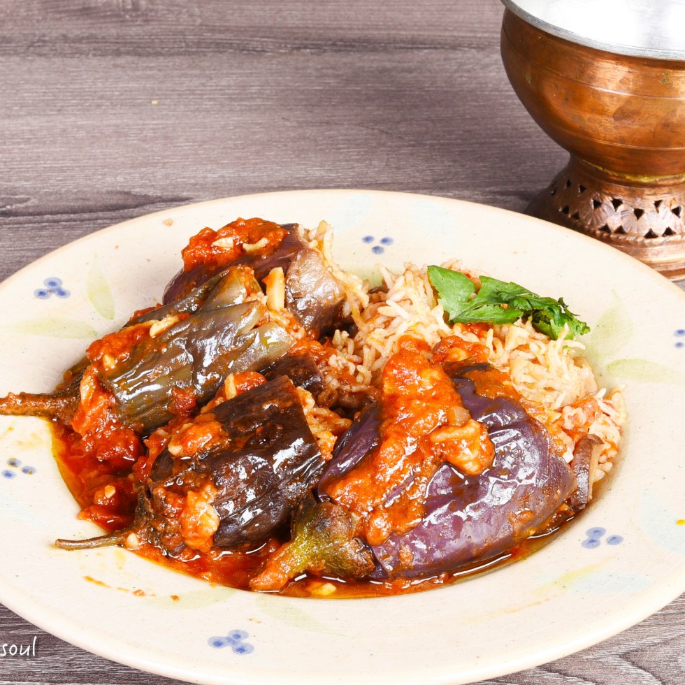 Tamatar Wangun (Kashmiri Eggplant in Tomatoes)